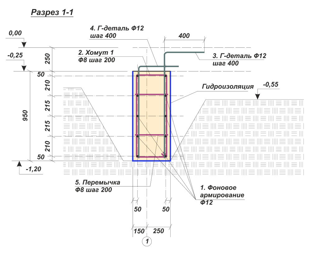 Еще раз убеждаемся в точности своих измерений, произведенных при финальной разметке траншей и сделанных «по месту», с учетом их глубины: -1.2 м от нулевой отметки.