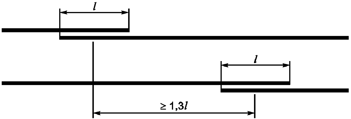 Так как у нас в углах есть Г-образный нахлест, к нему применимо правило разбежки. Делать нахлест в местах Т-образных соединений тоже нельзя. Нужно отступить от них не менее 1м.