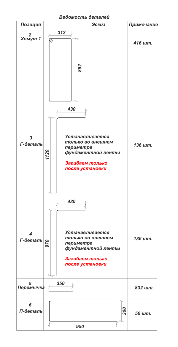 С помощью ручного арматурогиба или станка для гибки арматуры готовим необходимое количество хомутов и П- деталей соблюдая их размеры и количество. (выше ведомость деталей) Нарезаем соответствующее ведомости количество перемычек и заготовок для внешних и внутренних Г-деталей. Однако обратите внимание: выполнение этого пункта актуально для вас лишь при условии, что вы отказались от покупки всех этих готовых элементов.