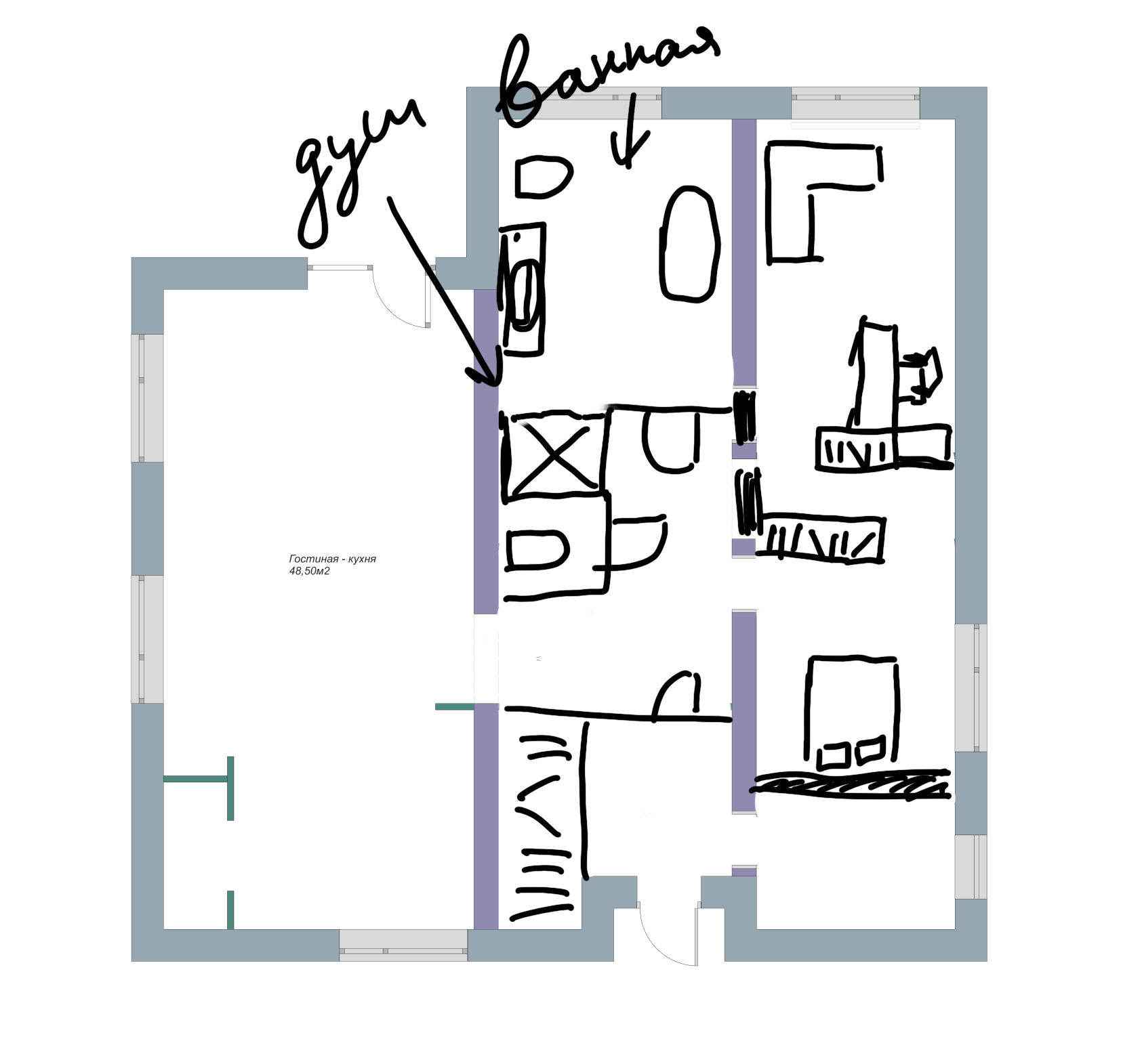 Под этот вариант нужно будет существенно менять прокладку инженерных коммуникаций, а именно
